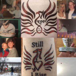 I have put off doing this for more than a year. It’s time to honor Ben in a way I haven’t before; with a permanent reminder that “Still I Rise”, as the Phoenix does. It is a symbol of being born anew and resurrected to new life. Ben’s birth and death have transformed me as I never imagined I could be. I will honor his day of birth til I celebrate my last. The birthdays without him are only physical, he celebrates with me and I hear his encouragement often to rise from the ashes and keep going.